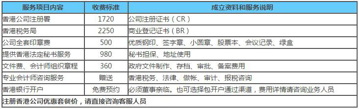 服务 内容全套证件 包含全套香港公司证件和一套章和香港政府所有收费